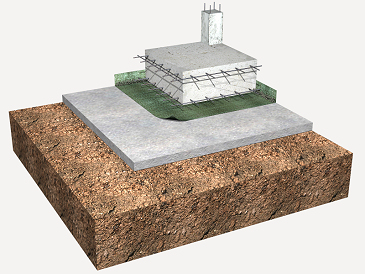 Impermeabilización bajo platea de fundación, con membrana de bentonita de sodio. |