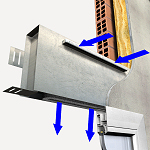 Aireador de admisión graduable, de aluminio lacado en color a elegir de la carta RAL, caudal máximo 10 l/s, de 1200x80x12 mm, con abertura de 800x12 mm, aislamiento acústico de 39 dBA y filtro antipolución tipo S30, para colocar en posición horizontal encima de la carpintería exterior de aluminio o PVC, hasta 80 mm de profundidad, con elementos de fijación. |