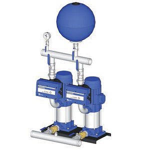 Grupo de presión de agua, de accionamiento regulable mediante tecnología Inverter, modelo MASTER HIDRO-INVERTER AP-HI-MASTER A/10-2 "EBARA", formado por: dos bombas centrífugas multicelulares, con una potencia de 2x0,75 kW, cuerpos de aspiración e impulsión y contrabridas de hierro fundido, eje y camisa externa de acero inoxidable, impulsores de policarbonato con fibra de vidrio, cierre mecánico, motor asíncrono de 2 polos, eficiencia IE3, aislamiento clase F, protección IP44, para alimentación monofásica a 230 V, equipo de regulación y control con variador de frecuencia (presión constante), dos unidades de control Hidro-Inverter, las cuales permiten la rotación de las bombas, cada una de ellas con pantalla LCD (manómetro digital), pulsador para el control manual de las bombas, sistemas de protección, función de rearme automático, indicadores luminosos de tensión, funcionamiento y fallo de las bombas y teclado de acceso a menú de programación, bancada metálica, válvulas de corte, antirretorno y de aislamiento, manómetro, presostato, tanque de membrana, de chapa de acero de 20 l. Incluso tubos entre los distintos elementos y accesorios. Totalmente montado, conexionado y puesto en marcha por la empresa instaladora para la comprobación de su correcto funcionamiento. Sin incluir la instalación eléctrica.