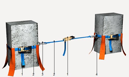 | Línea de anclaje horizontal temporal, de cinta de poliéster, fijada a soporte de hormigón o metálico | ||