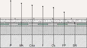 Impermeabilización de galerías y balcones, con geotextil no tejido compuesto por fibras de poliéster unidas por agujeteado, con una resistencia a la tracción longitudinal de 3,45 kN/m, una resistencia a la tracción transversal de 3,45 kN/m, una apertura de cono al ensayo de perforación dinámica según ISO 13433 inferior a 15 mm, resistencia CBR a punzonamiento 0,8 kN y una masa superficial de 300 g/m², sobre mortero de cemento CEM II/B-P 32,5 N tipo M-5, confeccionado en obra con 250 kg/m³ de cemento y una proporción en volumen 1/6, con espesor medio de 4 cm y pendiente del 1% al 5%, acabado fratasado, membrana impermeabilizante preelaborada flexible de PVC-P, (fv), de 1,2 mm de espesor, con armadura de velo de fibra de vidrio, y con resistencia a la intemperie, colocada suelta sobre la capa separadora, fijada en solapes mediante soldadura termoplástica, y en los bordes soldada a perfiles colaminados de chapa y PVC-P y protegida con capa separadora de geotextil no tejido compuesto por fibras de poliéster unidas por agujeteado, con una resistencia a la tracción longitudinal de 3,45 kN/m, una resistencia a la tracción transversal de 3,45 kN/m, una apertura de cono al ensayo de perforación dinámica según ISO 13433 inferior a 15 mm, resistencia CBR a punzonamiento 0,8 kN y una masa superficial de 300 g/m². | ||