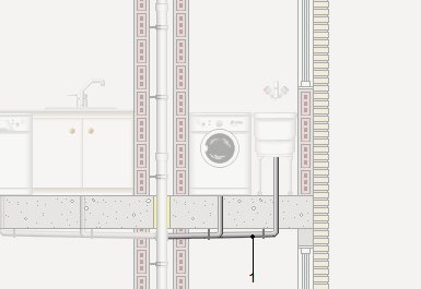 Red interior de evacuación, para galería con dotación para: pileta de pileta de lavadero, toma de desagüe para lavadora, realizada con tubo de PVC, serie B para la red de desagües. | ||