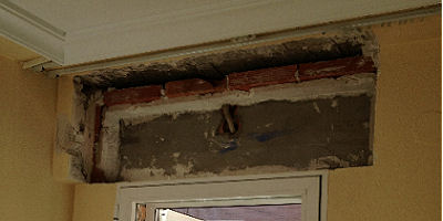 Recibido de bastidor para cajón de persiana, con pasta de yeso de albañil de construcción. | ||