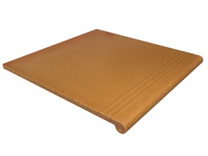 Revestimiento de peldaño de escalera interior, con piezas de gres rústico, formado por huella con canto redondeado, y tabica, gama media, capacidad de absorción de agua E<3%, con resistencia al deslizamiento media. COLOCACIÓN: en capa fina y mediante encolado simple con adhesivo cementoso mejorado, C2 TE, con deslizamiento reducido y tiempo abierto ampliado. REJUNTADO: con mortero de juntas cementoso mejorado, con absorción de agua reducida y resistencia elevada a la abrasión tipo CG 2 W A, color blanco, en juntas de 2 mm de espesor. | ||